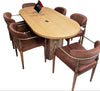Oval Ahşap Masa Takımı & Kollu Sandalye Seti, doğal dokuyu modern çizgilerle buluşturan özel bir tasarımdır. Oval masa yüzeyi, mekâna ferahlık ve akışkanlık katarken, orta ayağın dekoratif tasarımı modele ayrı bir karakter kazandırır.
